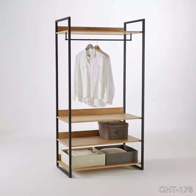 Quý khách có thể đặt chọn màu ván cho kệ treo quần áo khung chân sắt mặt gỗ GHT-178 sở thích riêng tại đây