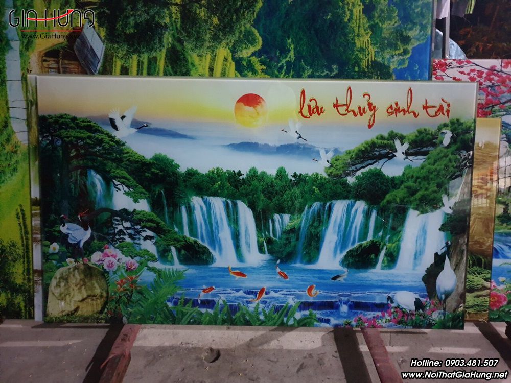 Tranh kính 5mm, in hình ảnh phong thủy Lưu Thủy Sinh Tài