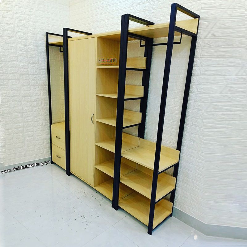 Kệ tủ treo quần áo khung chân sắt mặt gỗ GHK-61 - màu 325EV